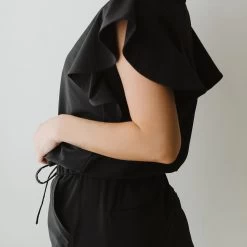 Taking everybody’s favorite Jumpsuit to the next ultra girly level! Featuring a chicย RUFFLEย sleeve, gold zippers at the ankle, drawstring cord at front and zipper at back. Designed like our Jetsetter Pants on bottom, they’re the perfect fit built to move with you for maximum comfort as you go about your day. Whether you’re jetting off on your next adventure or dressing it up for date night, this is your go-to for easy, cute and comfortable style. Buy now, thank us later.ย