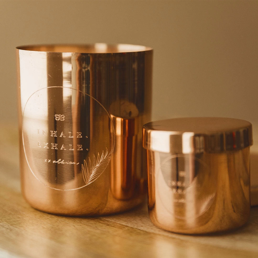 - Repurpose the 100% pure copper container. After the wax has burned, simply freezing the container overnight.  Once frozen, you can easily (and gently) chip away any wax remnants and then rinse with a little dish soap and hot water. They make great bathroom or desk accessories, tea light holders, vases, or even cups.