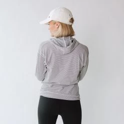 Say Hello to your new go-to jacket that’s both laid-back and luxurious! Constructed in one of our signature prints, Sweet Stripe, thisย sweatshirtย features roomy pockets, thumb-holes, and a lightweight but durable fabric that provides an easy and comfortable fit.