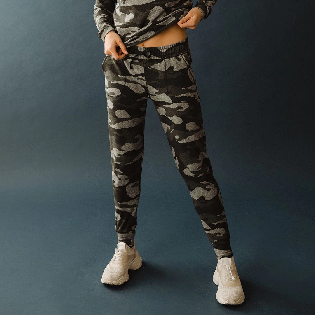 You wanted a print and we delivered. Our classic At Ease Jogger Fit is not an oversized jogger but juuuuust right and always flattering. We threw on a unique camo print also available in
