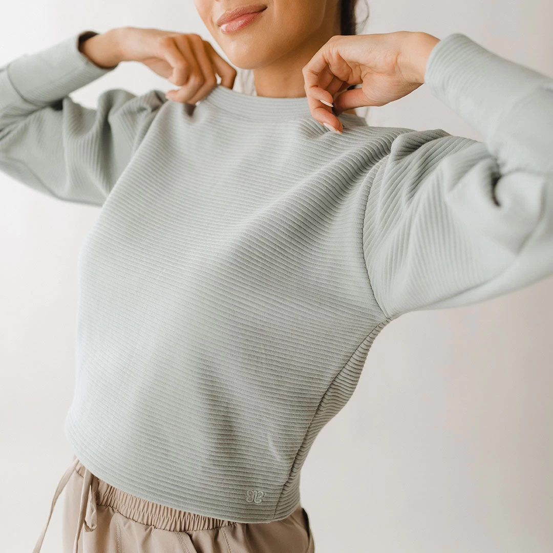We love versatility in our wardrobe, and the Atlas Ribbed Sweater is the perfect mid-weight piece! Amazing on its own with wide cuffs and puffed sleeves, this grey sweater is also light enough to layer under a jacket when things take a chilly turn. Amazingly soft with great structure, you’ll be loving sweater weather in this top!