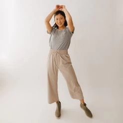 It’s our classic Audrey’s in a newย sandy neutral. These women’s pants are lightweight and super comfortable- hello wide leg! Perfect for everyday wear, these bottoms are built to last.ย