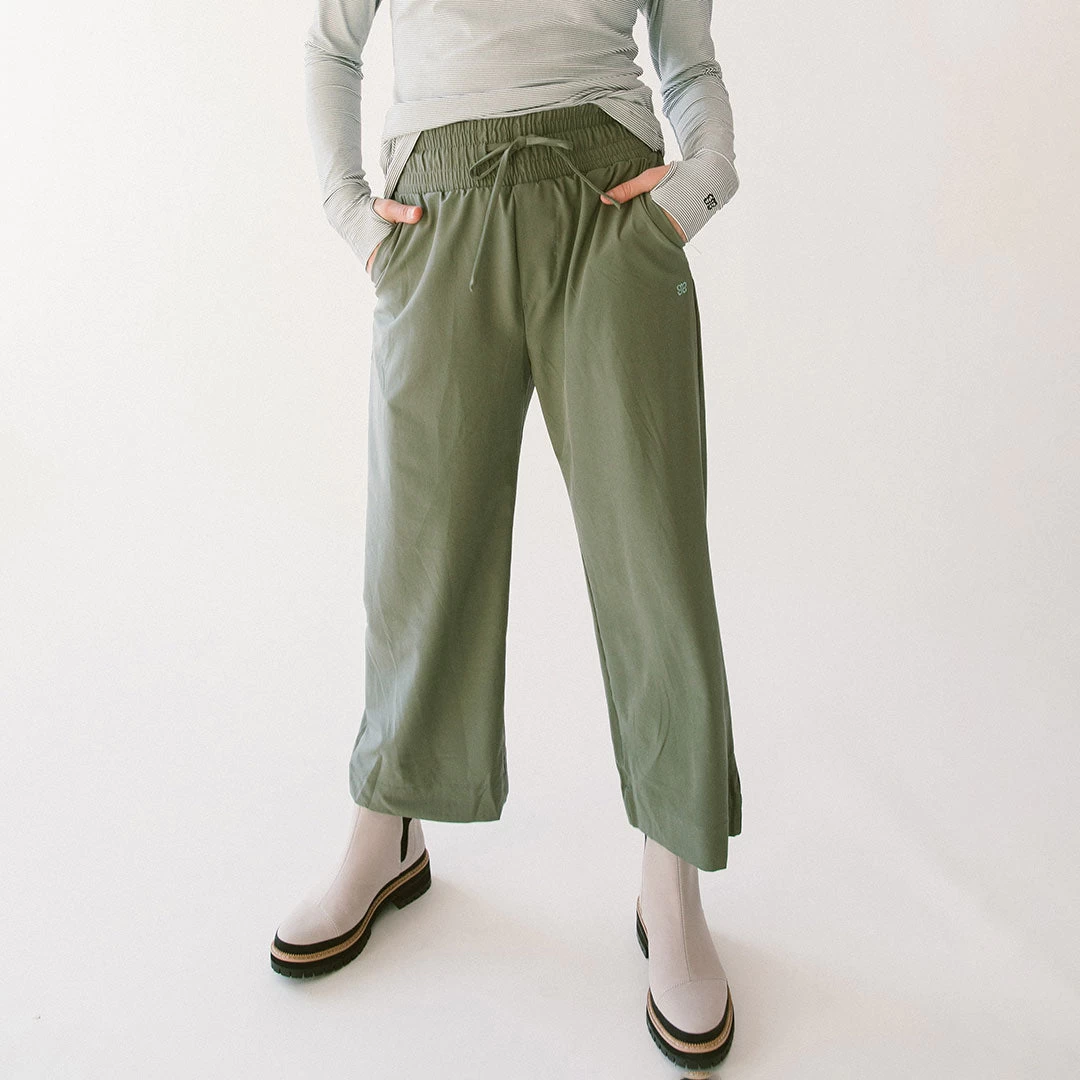Wide legged, slightly cropped, and a tummy supportive tall + wide waistband. What more could you ask for! Plus, this sage shade is the neutral you didn’t know you needed!ย