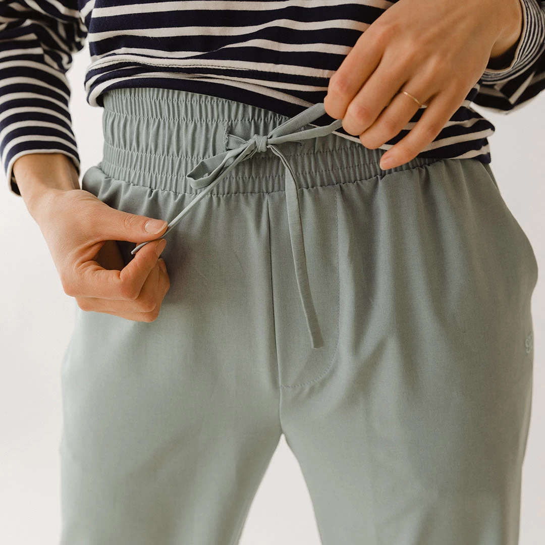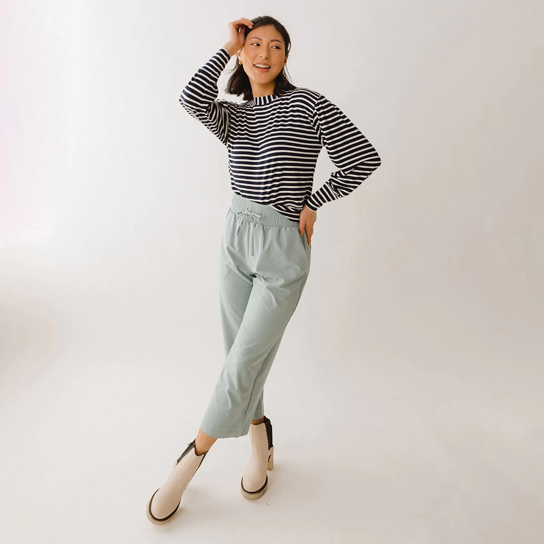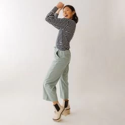 Meet the Audrey Pant. A cropped fit, wide leg, and high waist make these women’s bottoms a crowd favorite. Especially in this breezyย green shade!ย