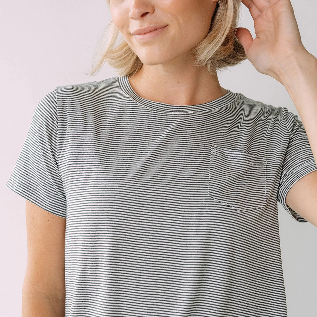 Our basic tee goes with all the things! Perfect for everyday wear, this lightweight favorite is especially great for long torsos. Mix and match away!