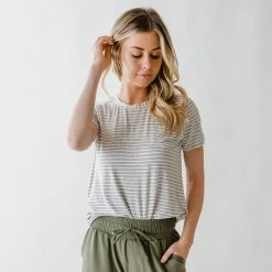Our softest tee in soft-toned stripes? Yes, please! Our basic tee features a relaxed cut and incredibly soft fabric. It’s a closet staple that you’ll reach for no matter what season it is!