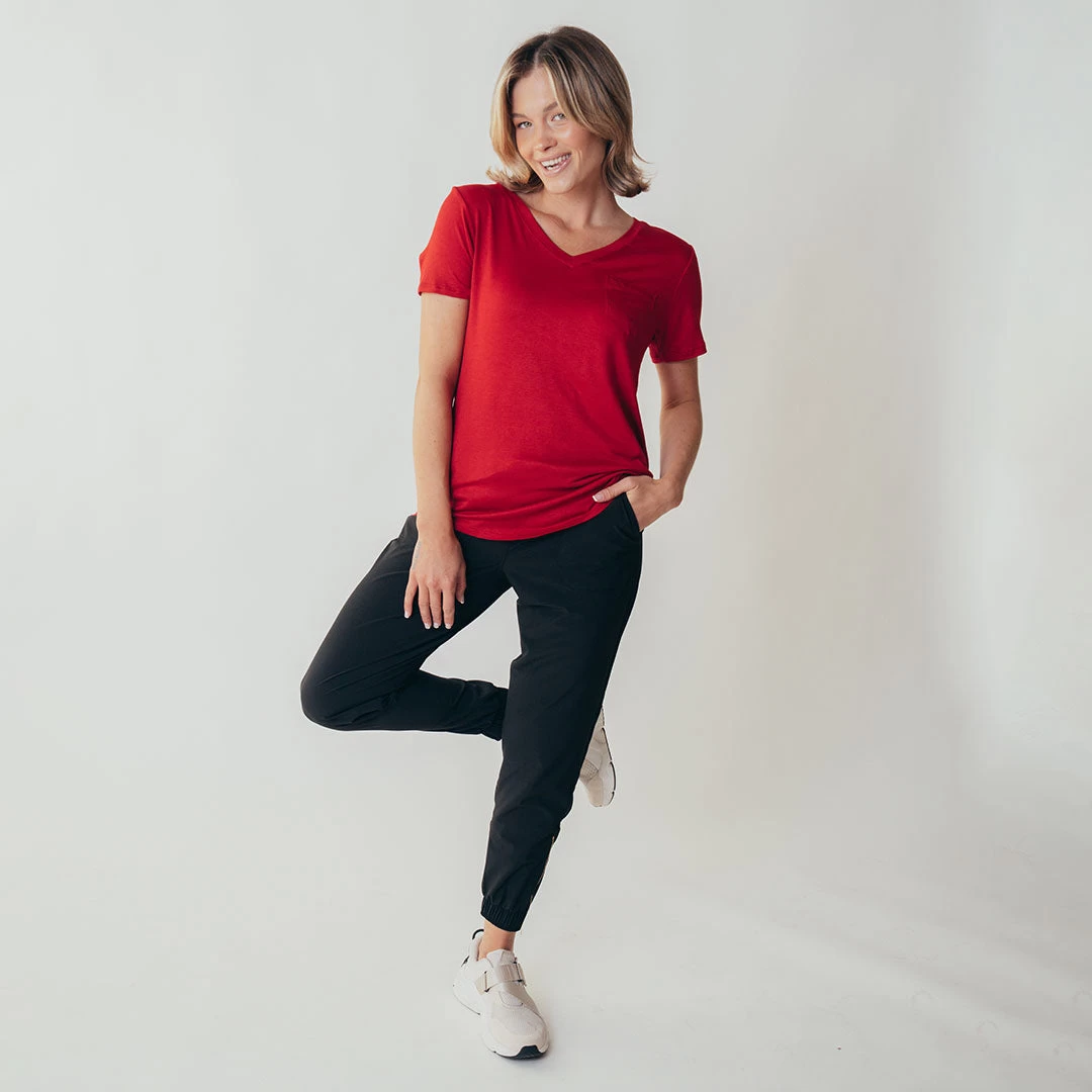 Basic V Neck Tee, Red