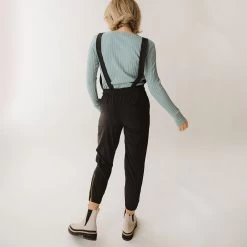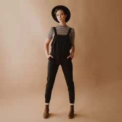 Our Classic Overall Jumpsuit in black features a square neckline, front and back pockets, cinch waist with tie and everyone’s favorite Jetsetter jogger bottoms with gold zippers. This fun new spin on our best-selling ladies jumpsuit provides freedom with adjustable straps to criss-cross or button-in straight. Click