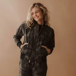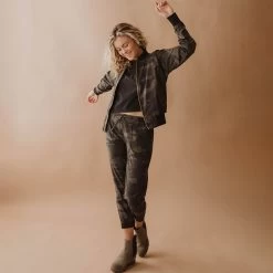 Our Bomber Jacket is now in a camo print! It’s that transitional piece that can take any outfit from classy to sassy. Plus, the gold zippers give this versatile jacket a feminine edge.