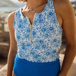 A modern mix of a ribbed bottom and a floral top, this suit is full of our favorite fits and features! Complete with a gold zipper in front and a waist-defining bow in the back, a classic feature of our Castaway silhouette.ย A short-torso favorite!