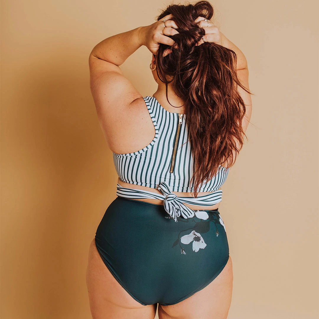 A best seller! Our Bon Voyage one-piece swimsuit, in a Castaway silhouette, combines florals and stripes to create this adorable mix ’n’ match number!