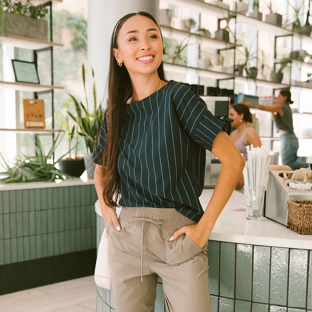 The Boss Crop Tee is the definition of “elevated basic” with all the style of a pinstripe blouse with the comfort of an oh-so-soft tee that you’ll dress up or down with ease. A boxy cut and drop sleeve makes this tee one of the most versatile tops in our closets.