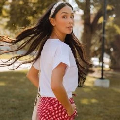 You asked, we answered! Our favorite Boss Crop Tee in a bright, goes-with-anything white. A great work piece, this white cropped blouse has a smooth boatneck, loose fit, and pairs amazingly with