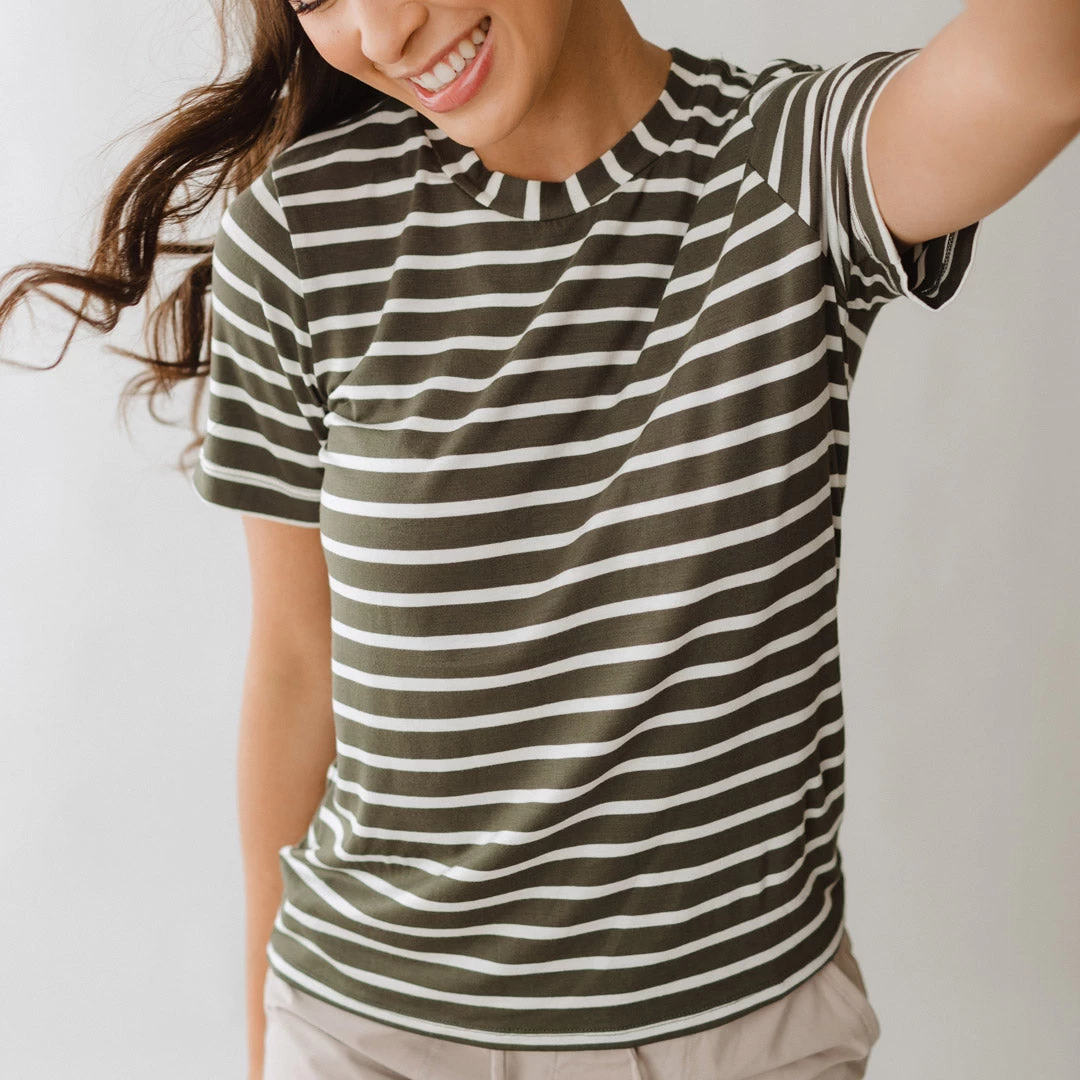 It doesn’t get more evergreen than a striped tee with a classic cut, and this green stripe definitely hits the mark! A relaxed fit with a preppy stripe, full sleeve, and crazy soft, you can’t have too many of these tees.