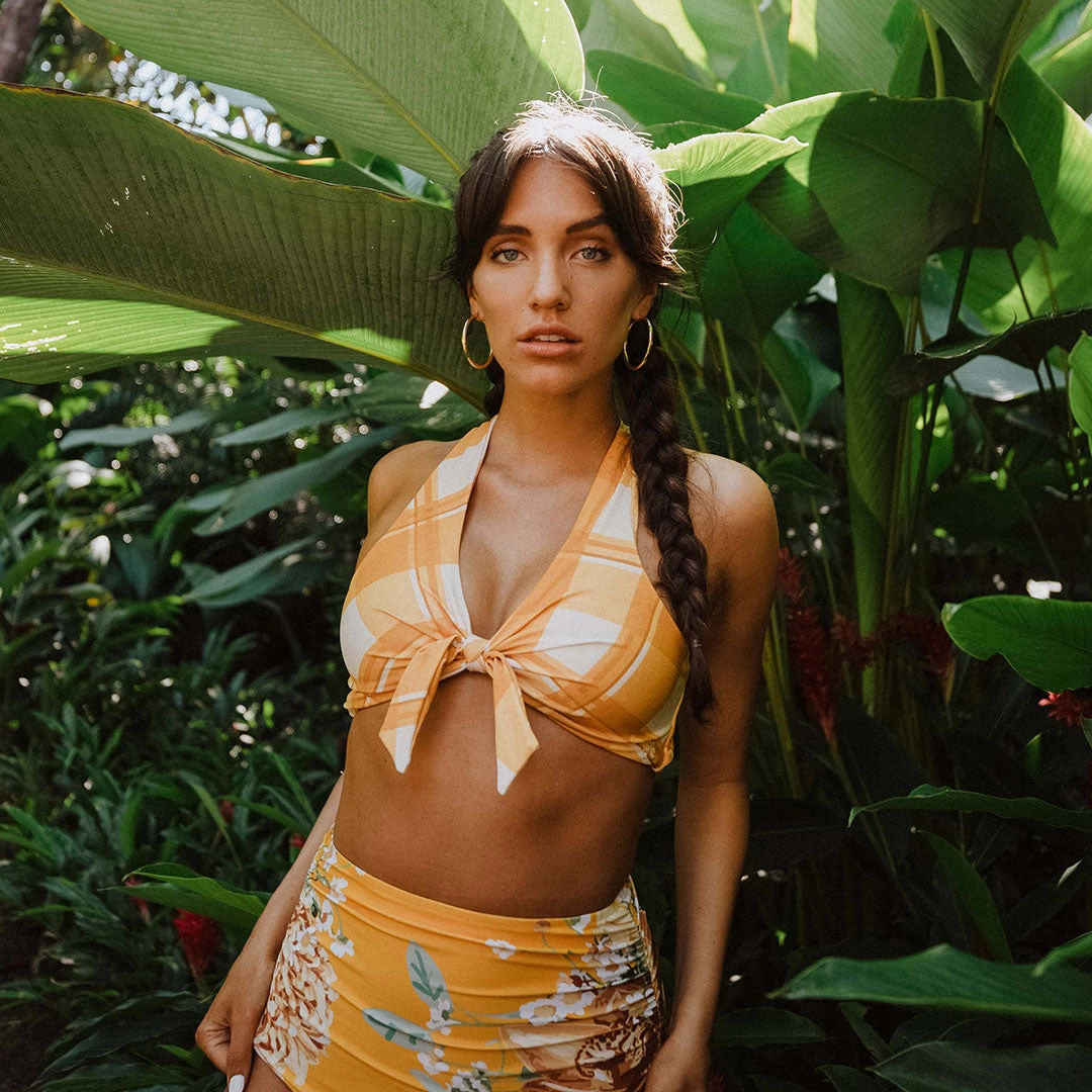 The Top Knot. A classic Albion Fit swimsuit style that’s not only flattering and flirty, but functional and supportive. The design paired with our bright Butterscotch Plaid gives this swimsuit a vintage flair while still being modern.