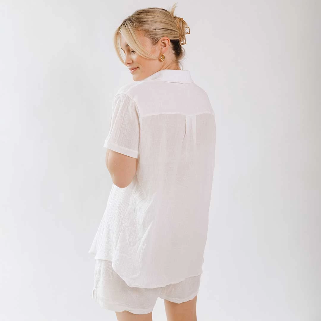 Our new Cabana Shirt is lightweight, versatile, and perfect to pair with your favorite swims.ย This button-up can take you from a dayย of sightseeingย to a beachside cabana with ease. (Plus, white is always in style!)