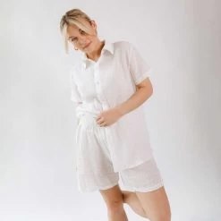 These gorgeous high-waisted shorts are our newest beach-day obsession! With an elastic waistband and a breezy, loose fit, our Cabana Shorts in White will go with all your favorite suits.