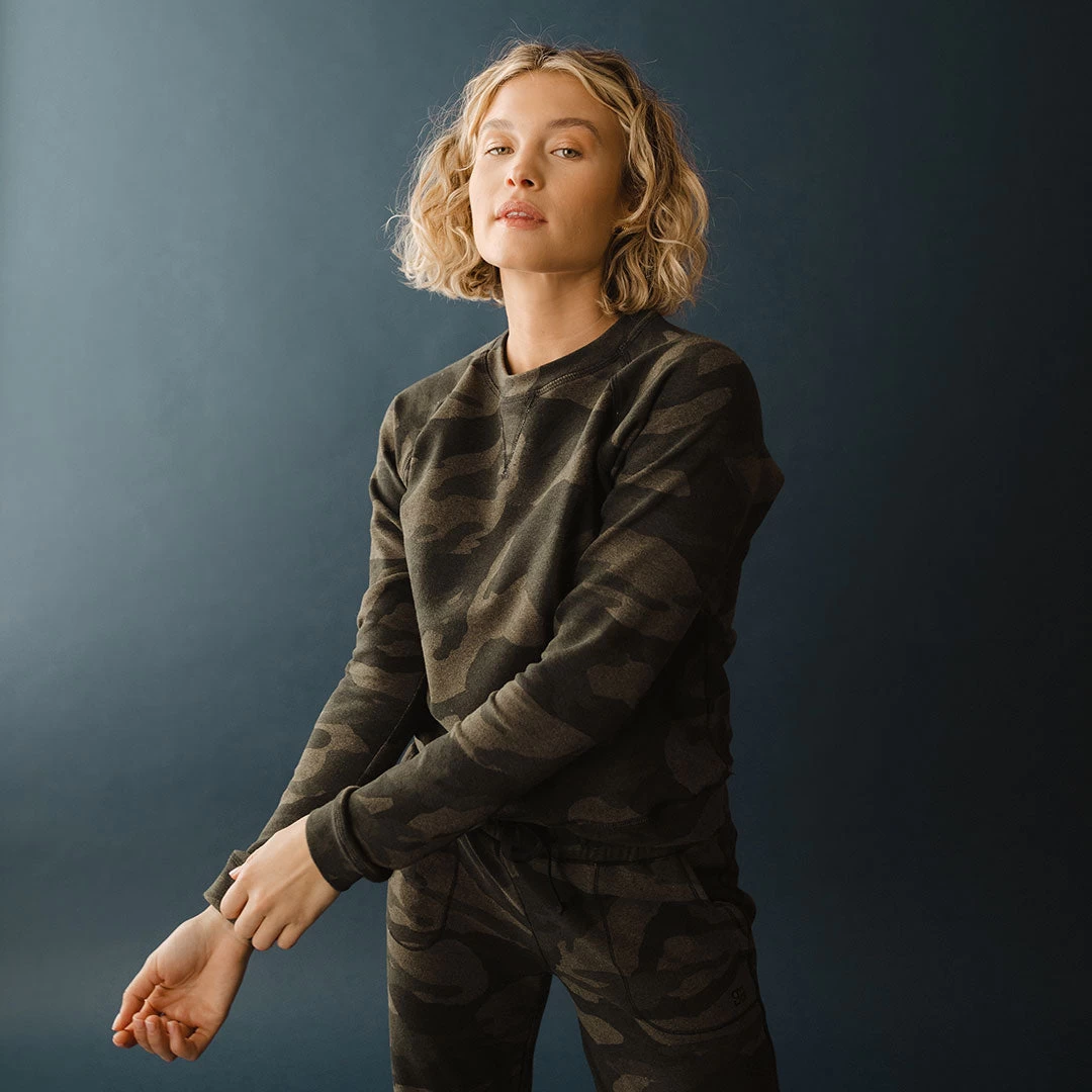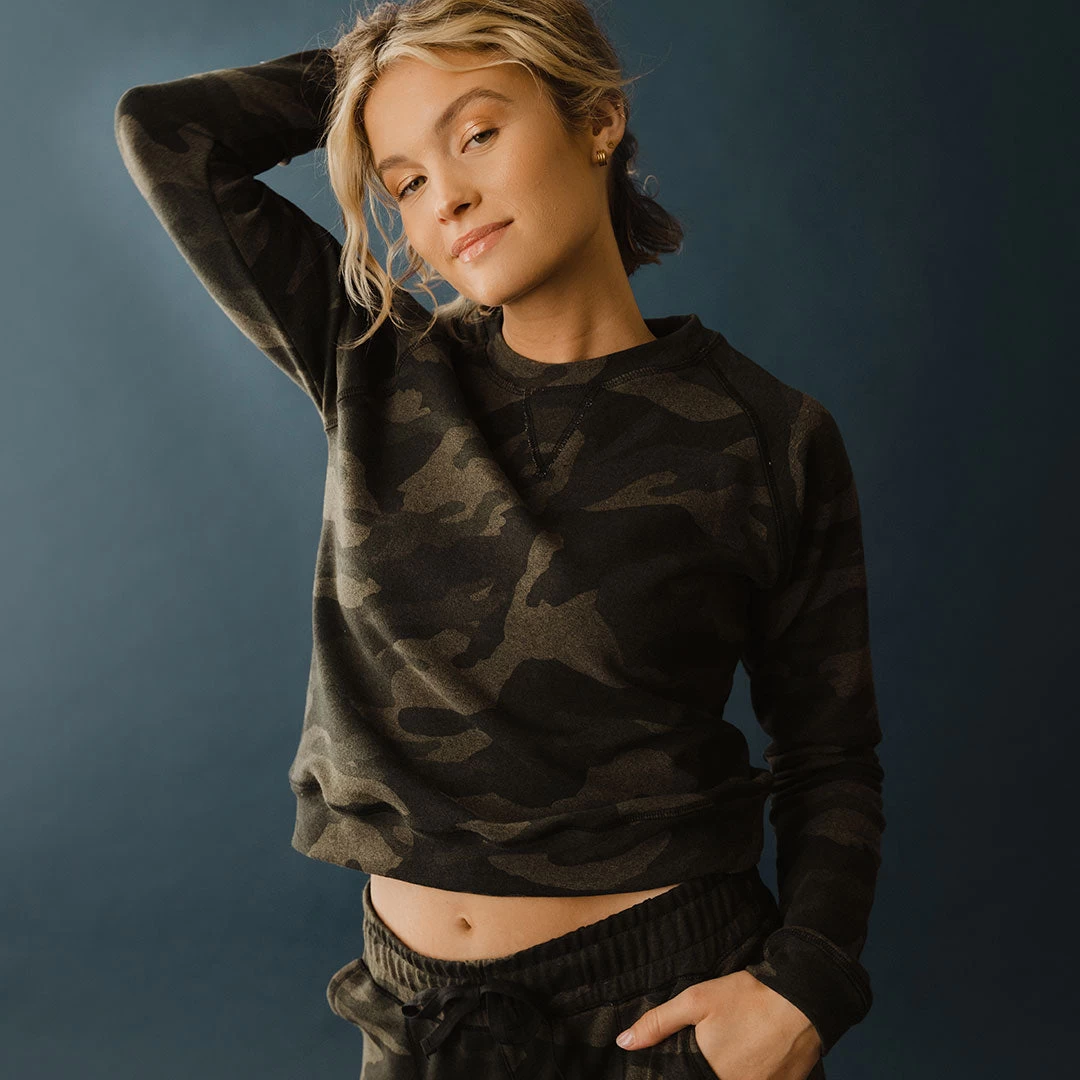 A classic sweatshirt , it’s what every gal wants, right? A not so cropped but not oversized fit is flattering and adds a little more glam to that super casual sweat shirt look. The premium fabric is thick and warm and breathable and wears well through the years. Also offered in