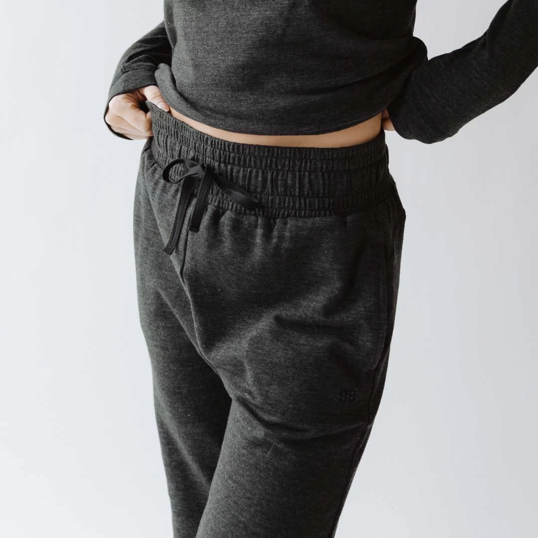 Warning: Once you put these on, you won’t want to take them off! It’s our best-selling lounge pant in a new charcoal color perfect for those comfy-cozy sort of days.