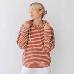 Cool breezes call for a cozy hoodie! Nautical vibes are what this burnt orange pullover is all about, with an oversized fit that easily layers up when the winds change. It’s everything great about athleisure style, soft and sporty!