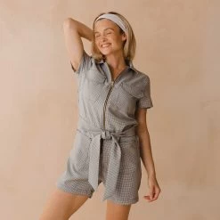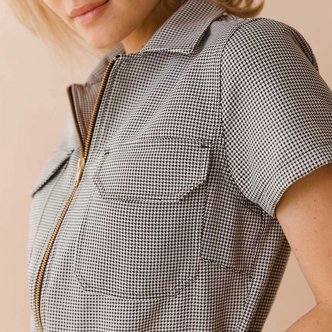 Meet our City Romper! Perfect for an afternoon stroll or an evening out, you’ll be sure to get noticed in this playful houndstooth number.