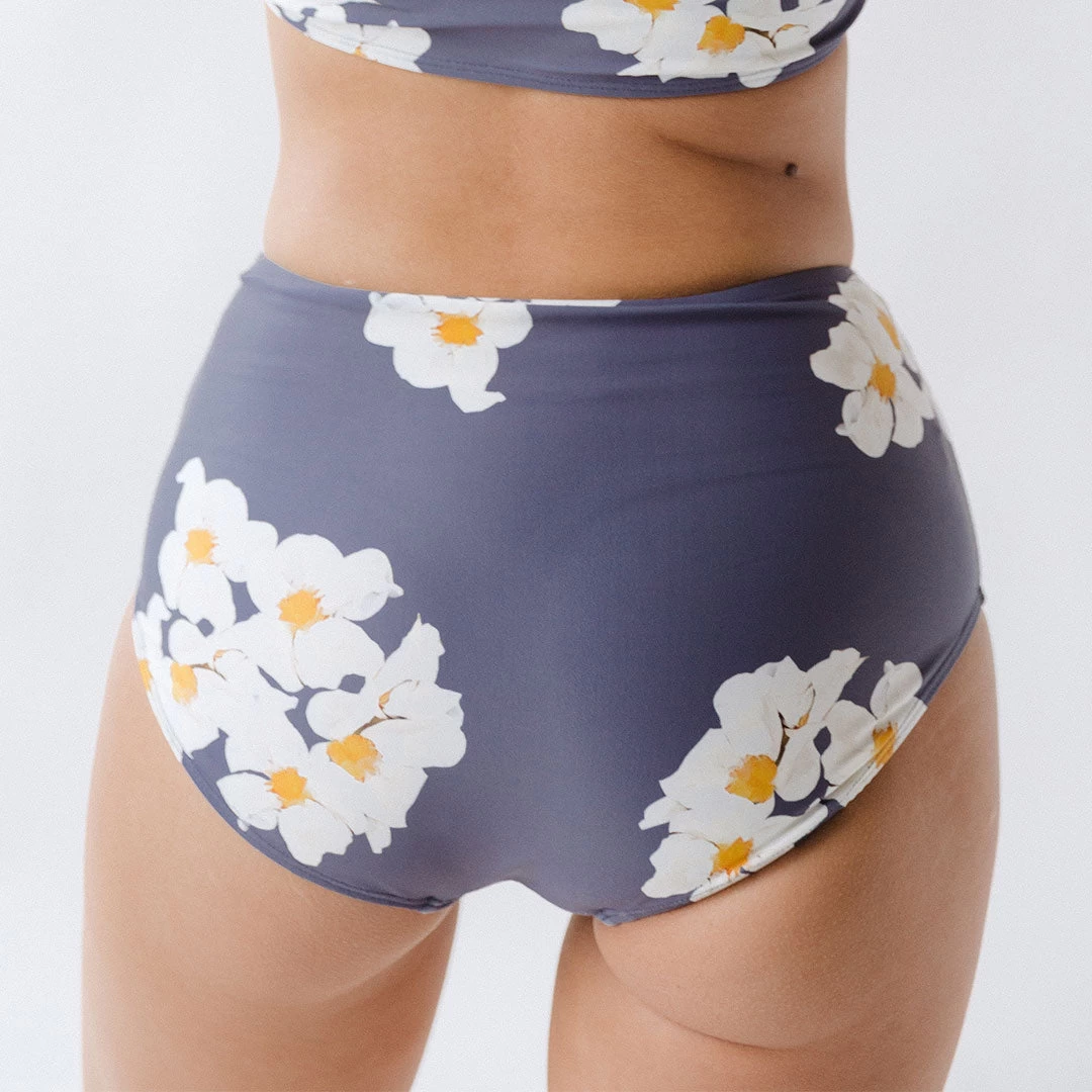 Full coverage bottoms with a vintage flair! These high-waisted swim bottoms are cute, comfortable, and will last for years to come. The daisy print is a fun, flirty, and perfect for any beach or pool day.ย