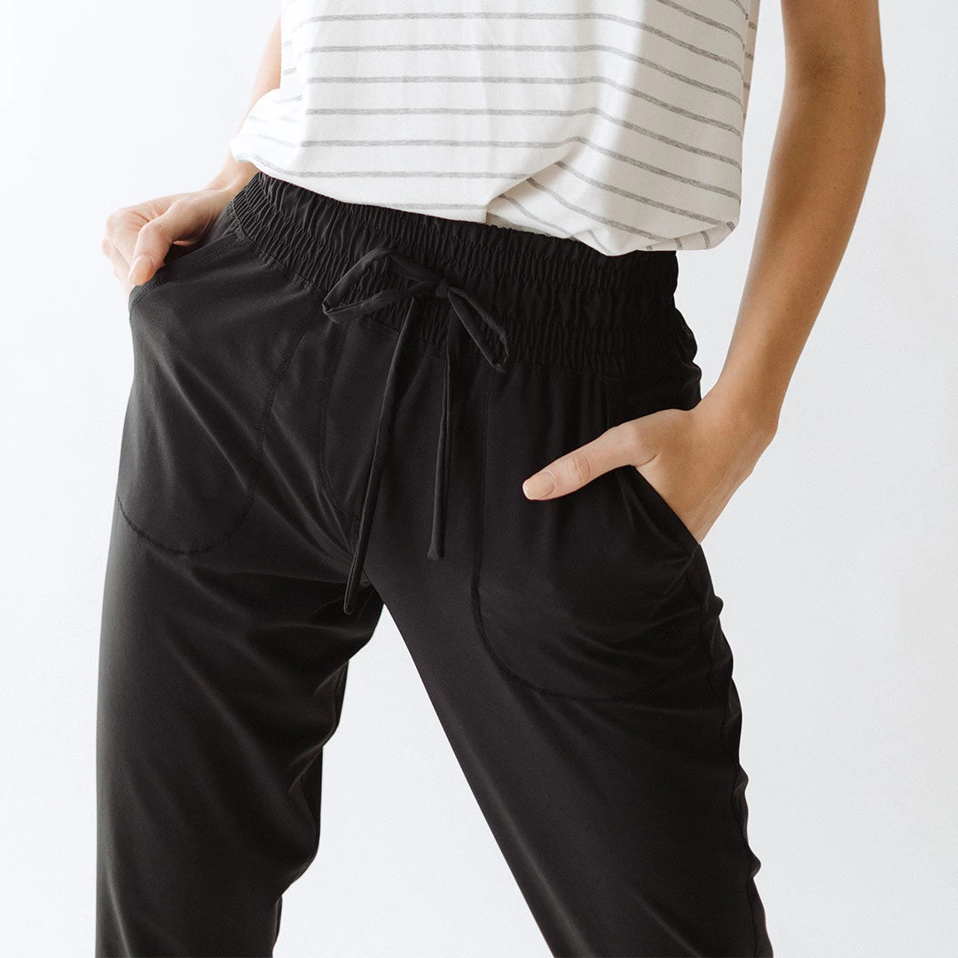 Our Destination Joggers give you what you love about our Jetsetters, with a twist! They have a wider 3” high waistband with no ankle zipper, and a slightly longer length. What’s your destination?