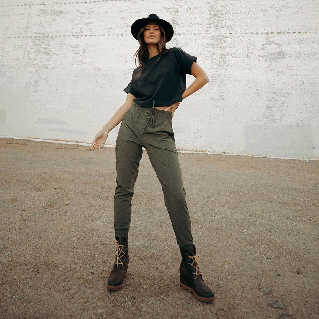 Make every destination yours in the new Destination Joggers in Heather Green. Featuring the well-known 3 inch waistband and comfy wide ankle cuffs for the pant everyone deserves.