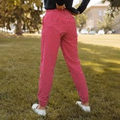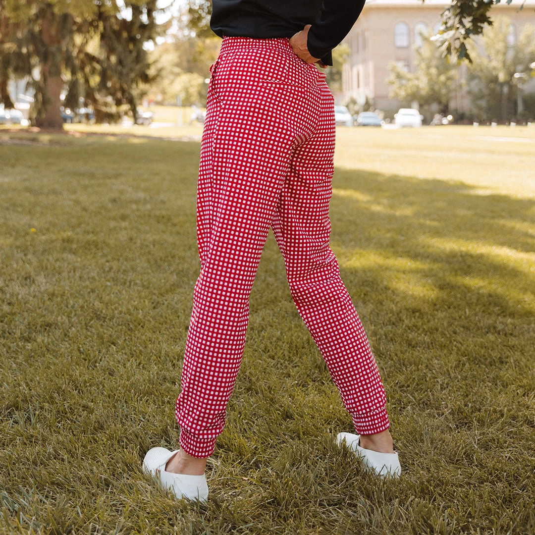 Super versatile joggers in a bright, cheery red gingham? Yes, please! This print was a summer swim favorite, we’re so excited to bring it to our Destination joggers. Look great from game day to Valentines!