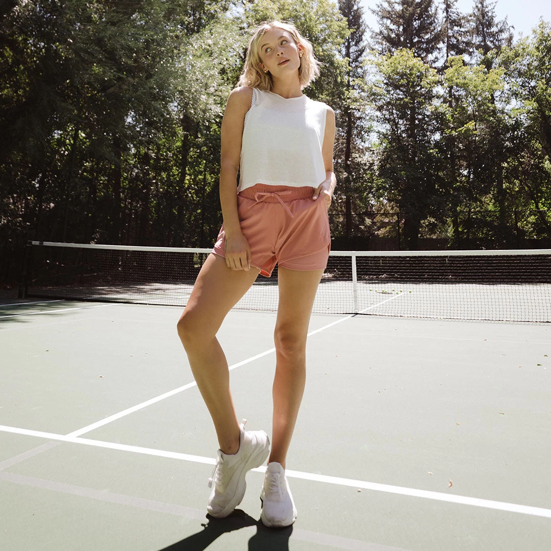 Flowy, breathable, with a slightly cropped fit and a knot detail at the back. Functional with a bit of a flair to add some style to your workout! Perfect for pairing with your favorite Albion workout bottoms and bra, let your arms breathe with plenty of coverage. Your new favorite workout tank is here!
