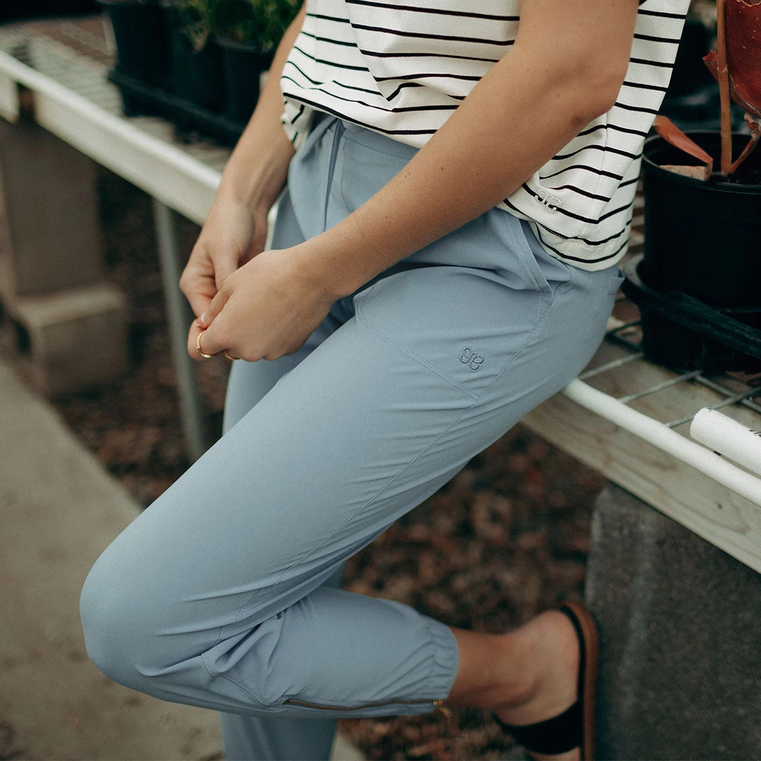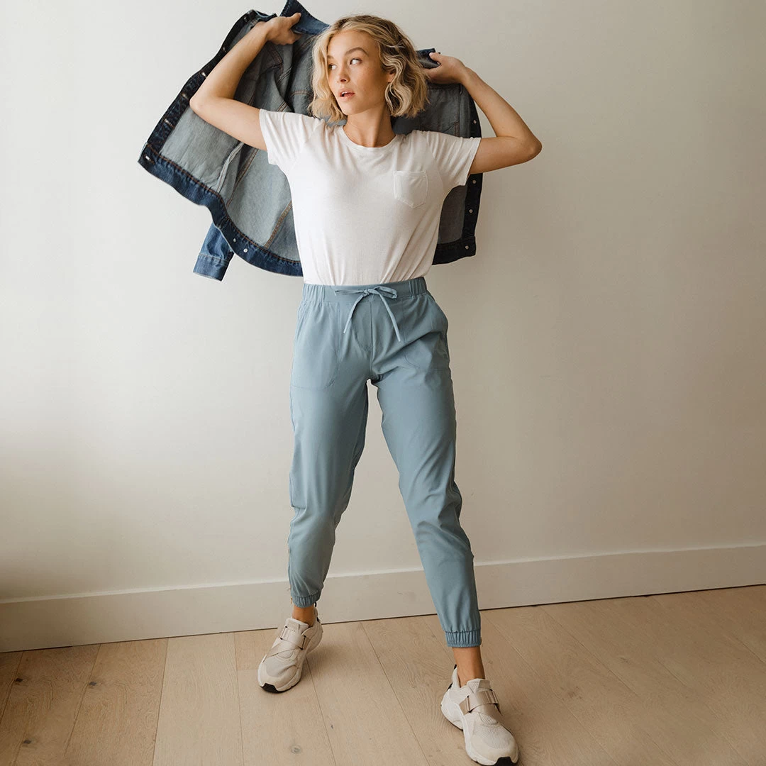 Chic, timeless, and oh-so French! Our best-selling joggers for women look tres jolie in this French inspired blue. Featuring our signature, wrinkle-resistant, lightweight, do anything fabric!