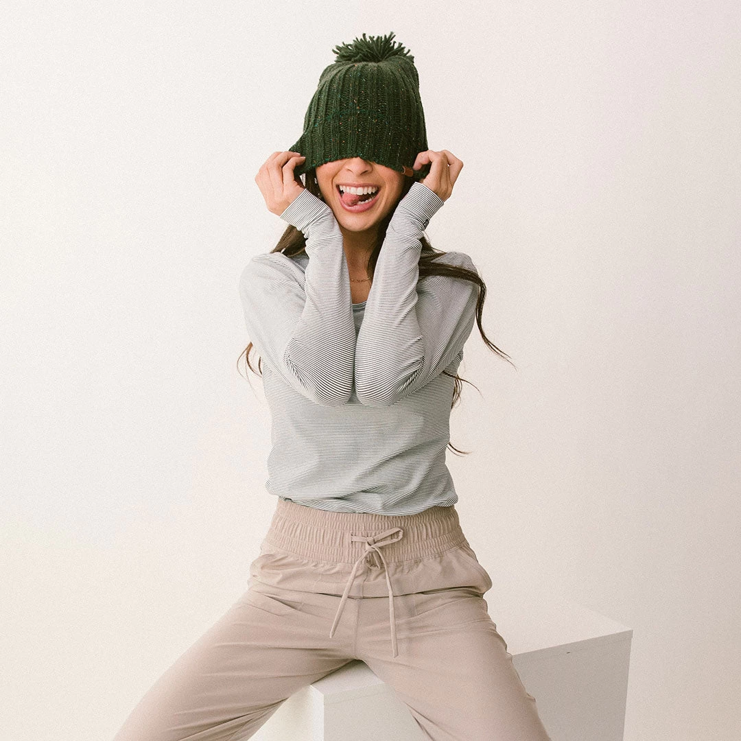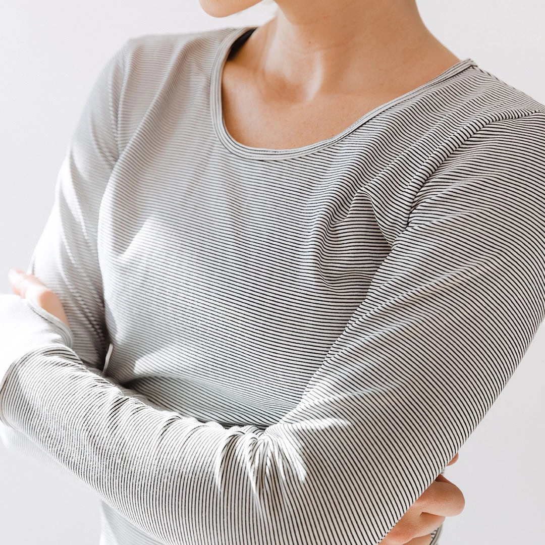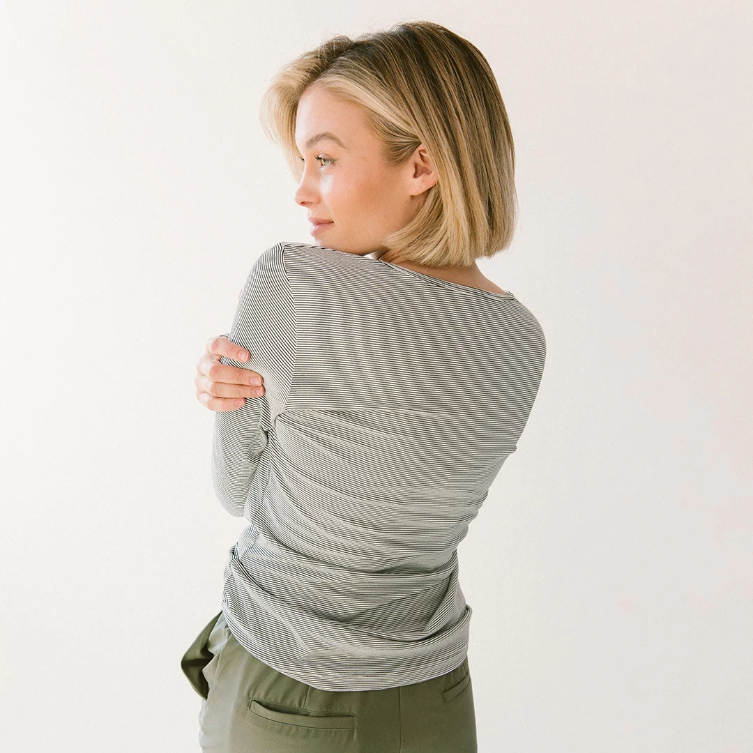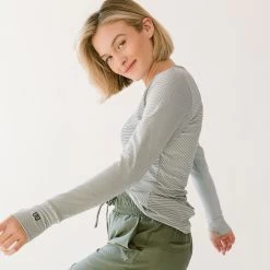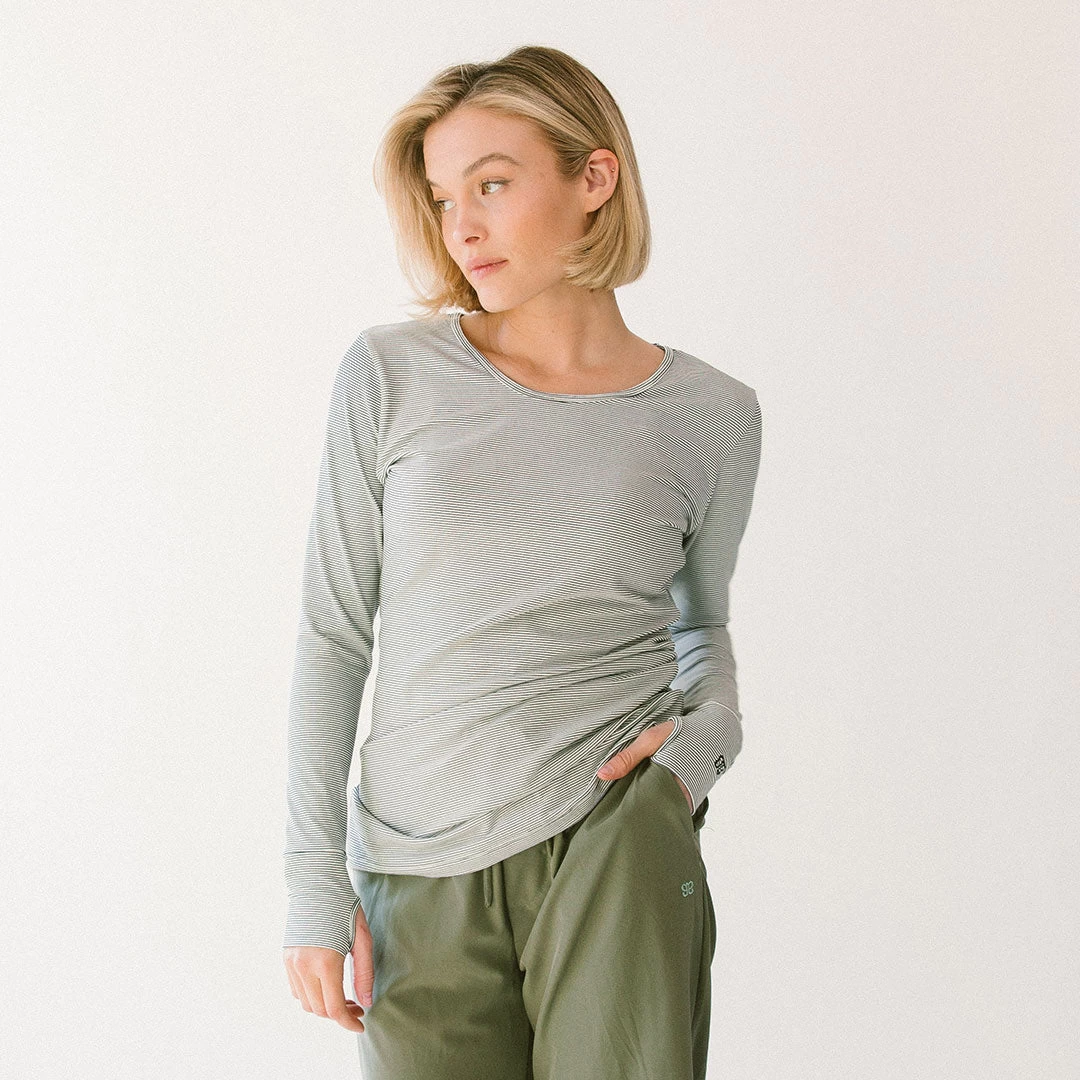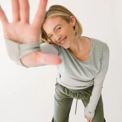 Sculpting, stretchy, and made in one of our signature prints: Sweet Stripe! We love this Go Long Crew’s comfortable stretch with cozy long sleeves and thumbholes. Layer this top with a jean jacket or style it with a jogger-style pant for a look you’ll love over and over!