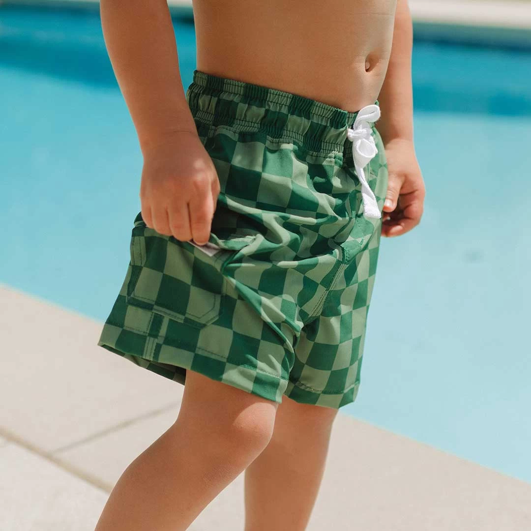 Look no further for the perfect swim trunks for your little man! Our Green Check Jr. Swim Trunks are comfortable, offer 45 UPF, and are perfect to match with mom and dad! Now that’s something to splash about.