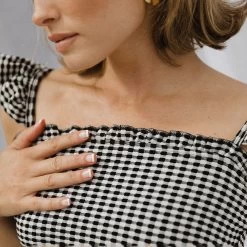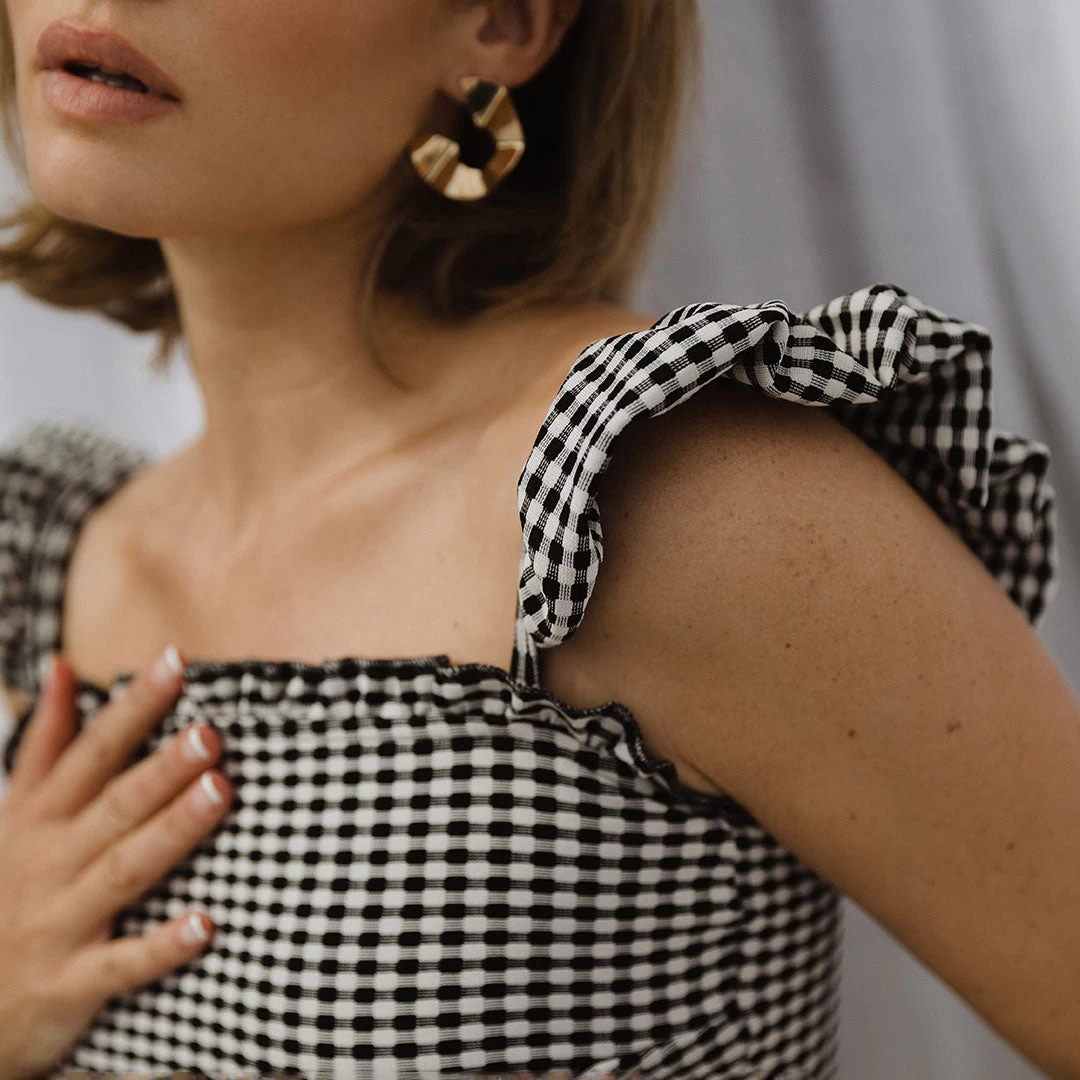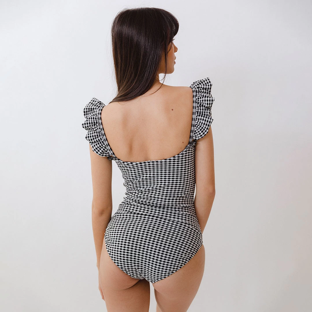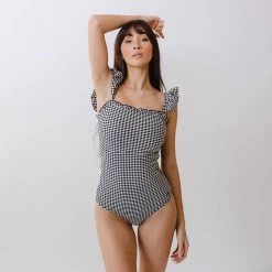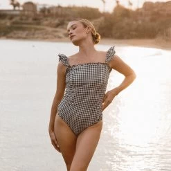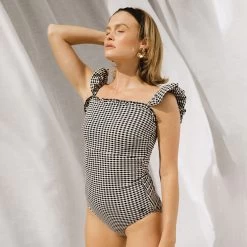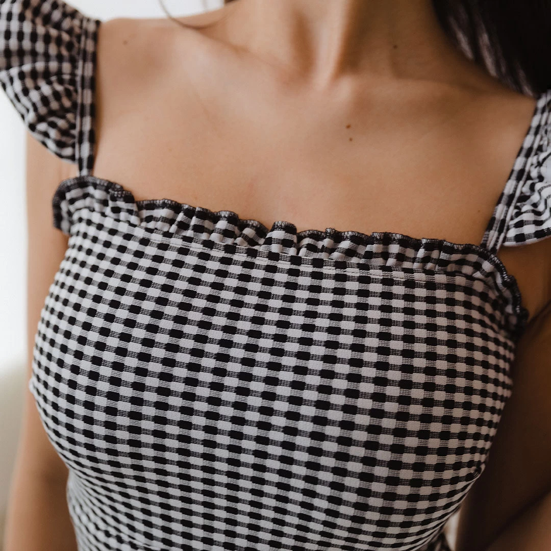 It’s girly. It’s gingham. It’s our Hampton One-Piece! We love this suit’s dainty ruffle sleeves and ruffle neckline. Sport this swim to the pool, beach, or brunch with a coverup!ย