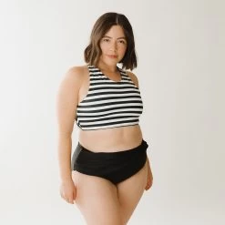Say hello to our best selling top, EVER! This versatile top is a two-in-one sports bra AND swim top. We love the high neck for full coverage and added sun protection, wide straps for support, and black and white stripes for timeless style that you can pair with printed or solid swim bottoms!ย