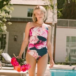 One of our best-selling silhouettes! The Icon is just that—a stand-out one-shoulder swimsuit with flattering ruching and the most eye-popping pink floral print. This suit is an amazing combination of sporty, flirty, and comfortable. It will be your new go-to style!