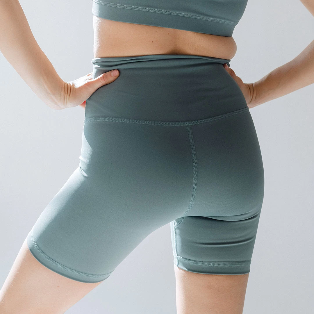 Comfortable, functional, and ready for ANYTHING! Introducing our mid length 5.5″ biker shorts in a blue-grey shade we’re adding to our list of favorites. Wear these for your workout, then throw on a