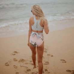 Shades of blue, grey, and pink, make forย the perfectly pastel paletteย ofย this Island Fever suit in ourย Castaway silhouette. A zipper at back and a racer back cut add support and a bow tie in back make this Albion Fit one-piece swimsuit unique and functional.