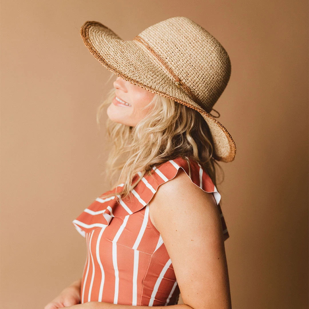 Look and feel good from HEAD to toe. Say hello to the Kelis Wide Brim Hat. This trendy ladies hat offers sun protection and adds the perfect finishing touch to your pool, beach or vacation look. Beautifully handmade, this accessory features a colorful braided paper band and bead detailing. Protect your face from the sun and look good doing it.