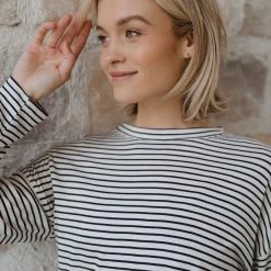 Light and soft, this women’s navy striped tee is a nautical dream. An ivory base with navy stripes with a slightly dropped shoulder, it’s the perfect top for summer evenings or a breezy day at the coast.