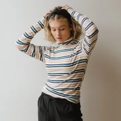This striped turtleneck tee is going to be your go-to this season! Perfect for layering or pairing with your favorite Albion bottoms, we are loving this for any occasion. A classic style you can wear for years to come.
