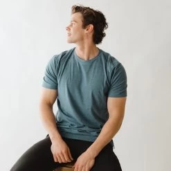Every guy needs a great blue crew neck tee, it’s a classic! This one is lightly heathered in our softest fabric, ready for a slim fit or size up for a more relaxed look. The perfect top for cozy