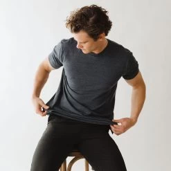 All the best features of a classic tee are here. The softest fabric, side vents for movement and a classic crew neck. This one is a neutral heathered navy color that works with everything from