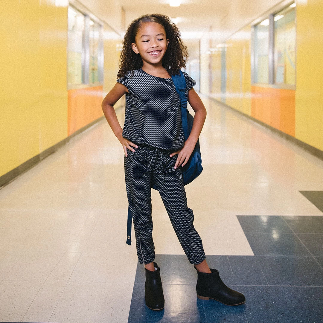The mini jumpsuit is back in our favorite subtle Dash print. With a comfortable drawstring waist, fun zipper details, and front pockets, this jumpsuit is perfect for dancing, playing, or twinning with your mini-me in family pictures.