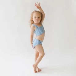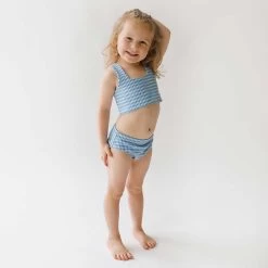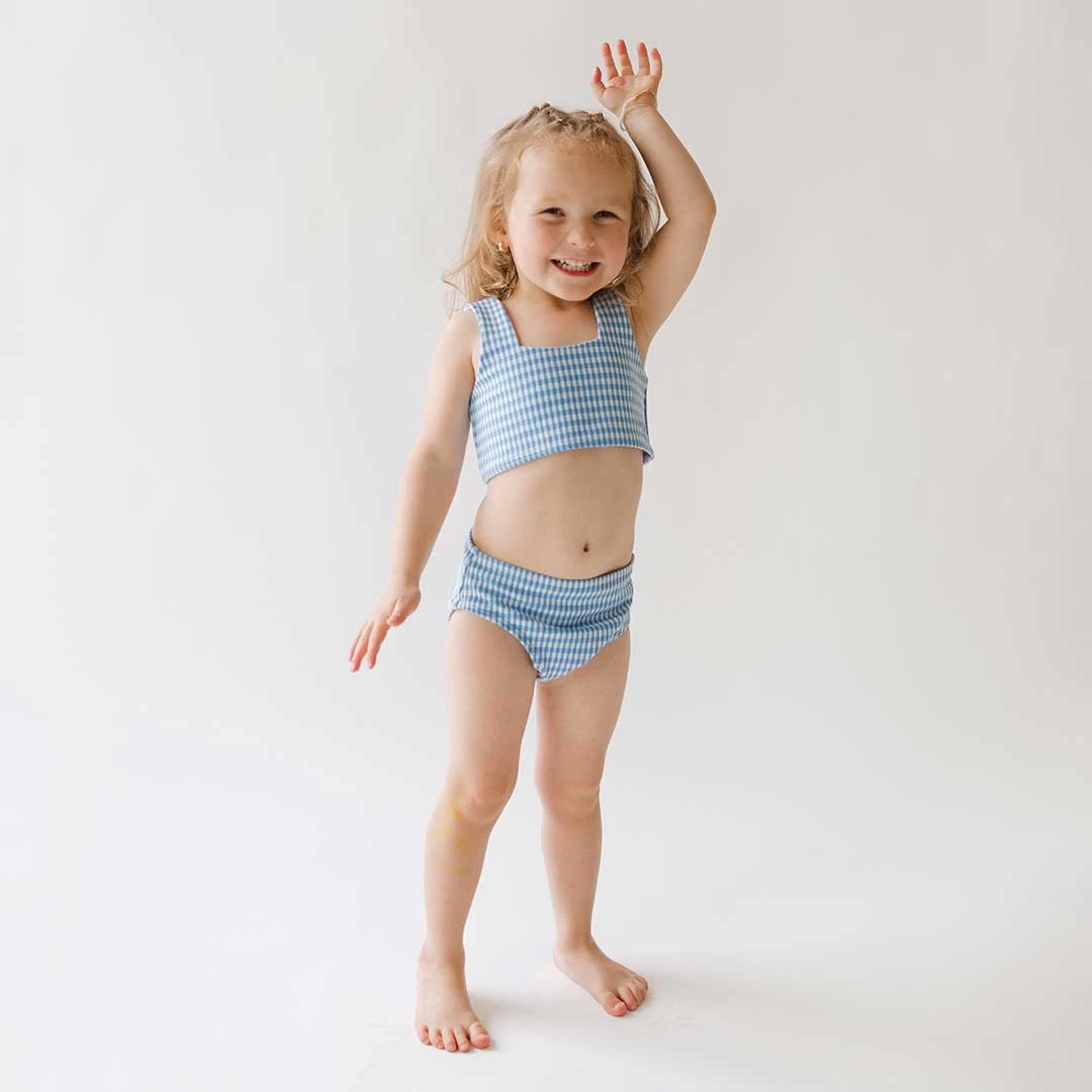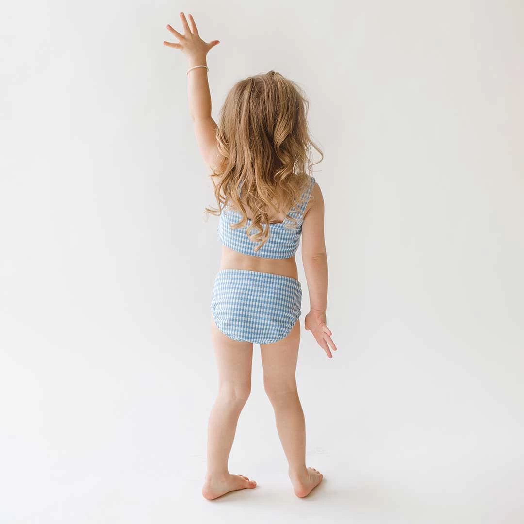 Perfect for summer afternoons spent splashing in the pool, this cute-as-a-button two-piece set is made from the softest and most darling bluebell fabric.ย Match withย your mini-me and have the best summer ever!ย