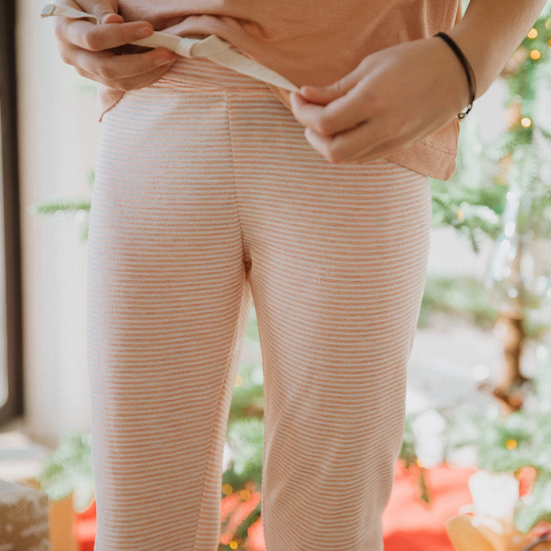 Looking for holiday pajamas for your little? This sophisticated, cute, and comfy Mini PJ Set is just right for your Mini-Me. A festive pink relaxed top and delicate pink pinstripe joggers will be perfect for Christmas morning or for year-round wear. The joggers offer an adjustable drawstring and wide waistband that will work for kids who just keep on growing.