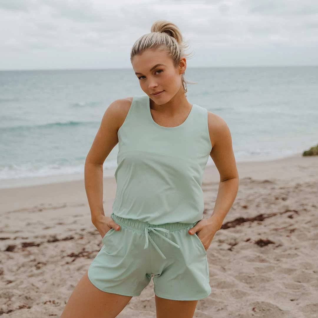 Perfect for warmer days, our Tank Romper made of a breathable fabric that keeps you comfy without the sweat. Perfect for an outdoor picnic or a night out with the girls, this romper’s mint hue is the cutest statement style!