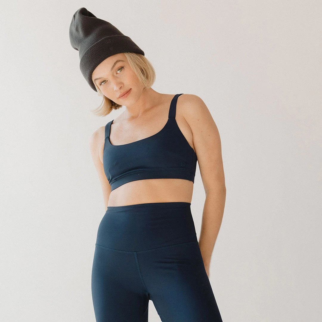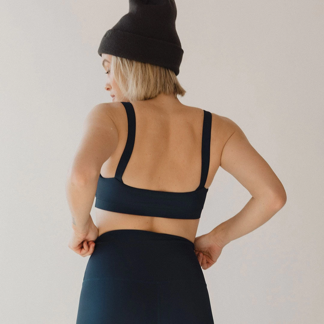Meet our Navy Momentum Bra, a workout/swim topย designed to maximize your comfortย AND confidence. With thick straps and aย sturdyย waistband, this bra will stay in place all day long!