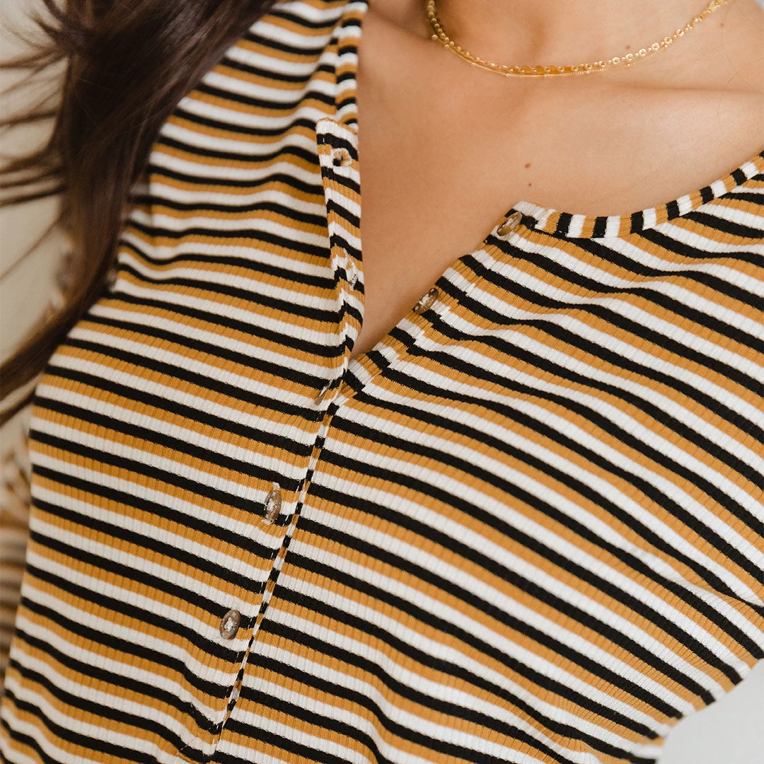 Everybody’s favorite Henley is now available in Mustard and Black Stripe! Medium-weight knit fabric, full sleeves and Albion custom buttons to complete the look! Pair with our classic