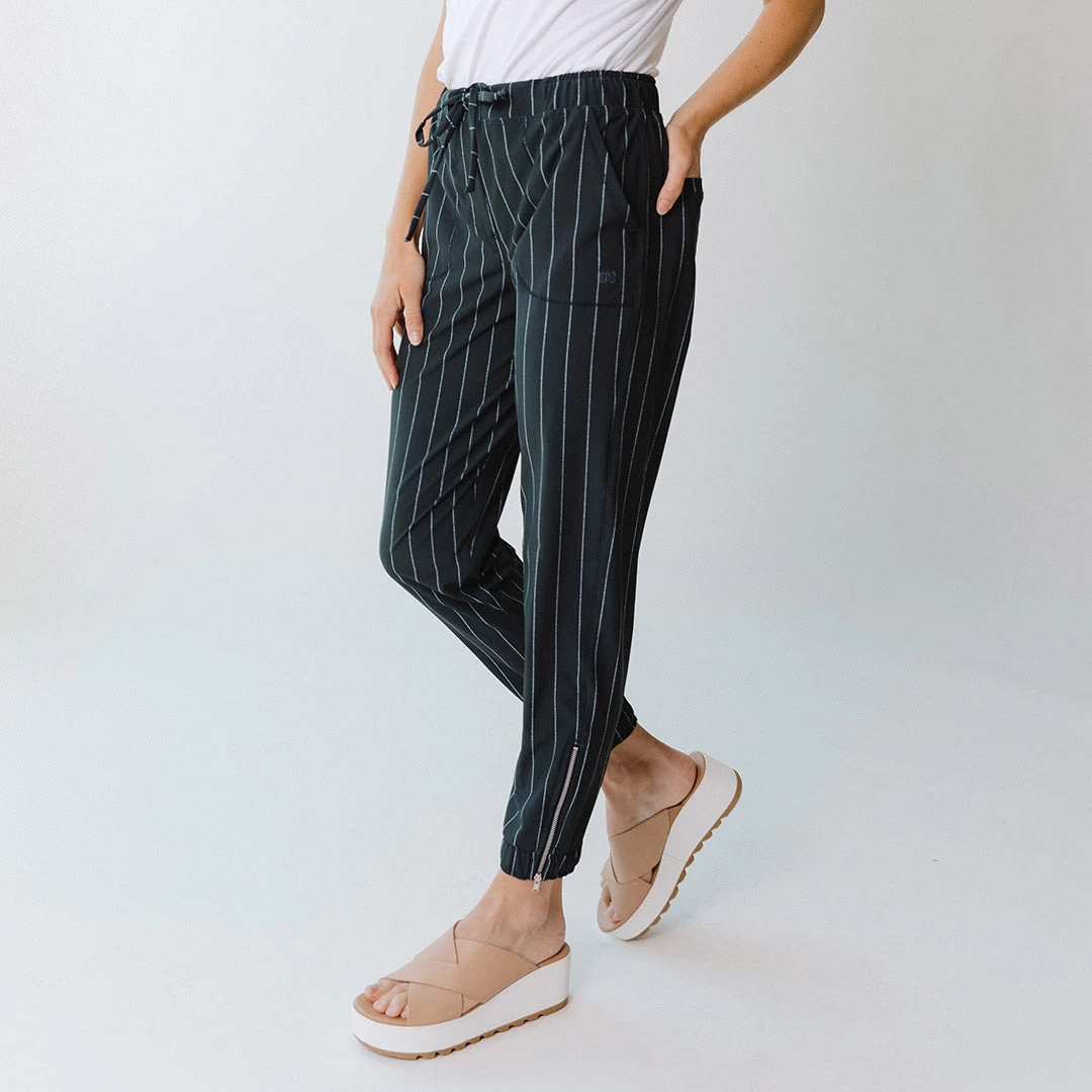 With a subtle stripe, these Navy Jetsetters are classy and cool. Complete with a silver ankle zipper, these pants can easily pass as semi-professional wear. Plus, they’re designed for all-day comfort!